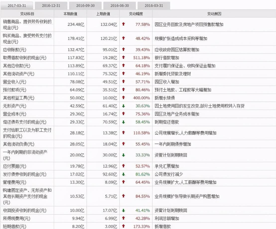 【华夏幸福的一季度资产负债表的指标异动声明】,