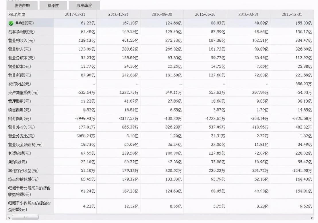 一般的投资者最爱看的就是这张报表,利润表。但这张报表要比资产负债表简单的多,而且很多东西都不太可信。随便看看就好。