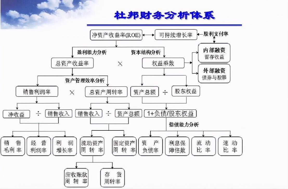 对于企业的总体分析,经常会提到一个体系叫做杜邦分析体系,是美国杜邦公司开创的,全世界的价值投资者都在用它,他是通过净资产收益率计算公式的分解,来寻找驱动企业利润的关键因素,是一套比较高效的财务分析。