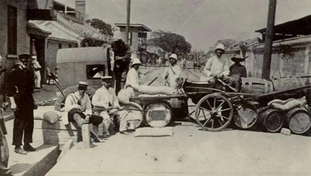 ▲洋人在北京使馆区设置路障。图源:网络