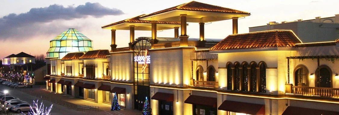 斯普瑞斯奥特莱斯园区,以“一心两轴”为设计理念,将西班牙新古典风格与中国围合式庭院风格完美结合,可谓是中西合璧的佳作。