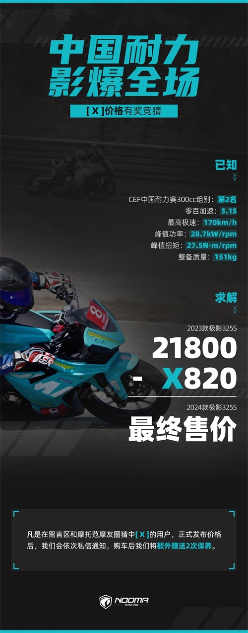 诺马打磨两年的新仿赛车型极影325S即将上市售价两万以下!