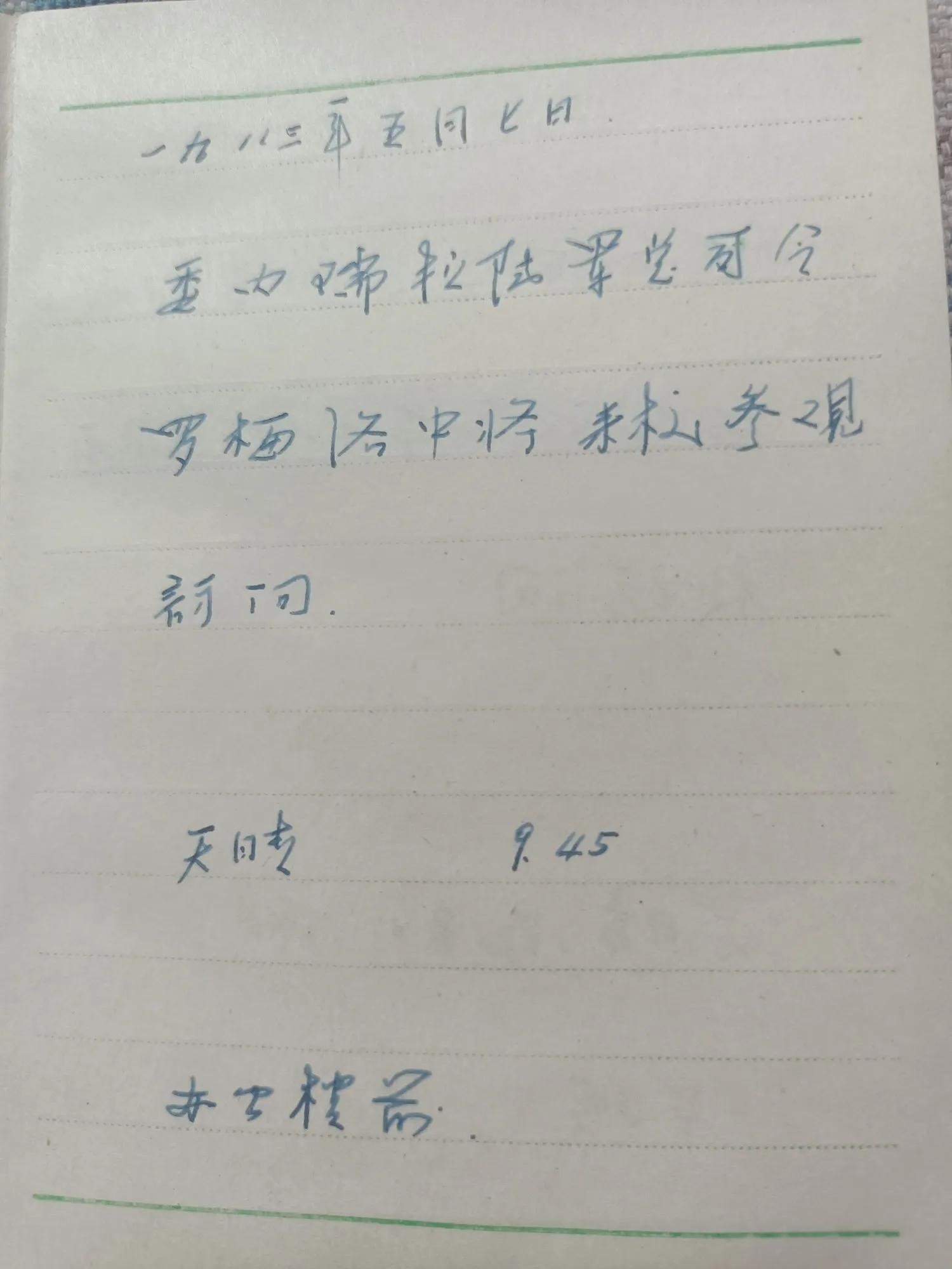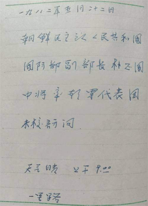 我们12班杨春明同学是位有心人,我们傻乎乎完成任务就拉倒了,他却及时记录下来。近日老杨说翻出了在军校时记录担负迎外仪仗队任务的小册子,并把有关记录拍照发在我们班小群里。我将其整理发布于此,以飨读者朋友,特别是母校各位领导和学友。