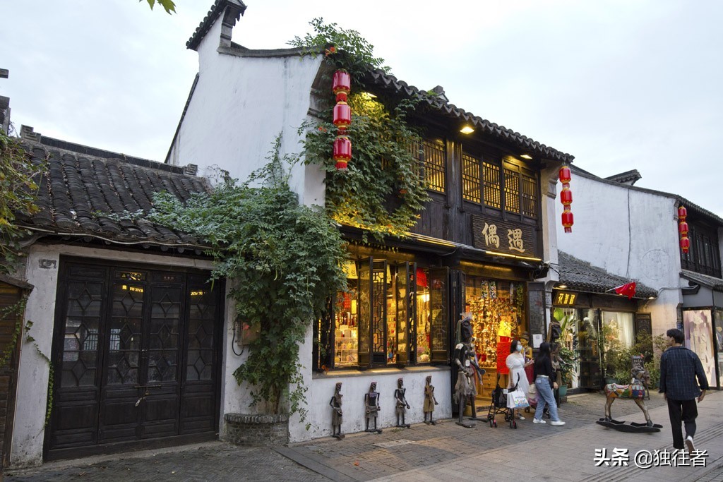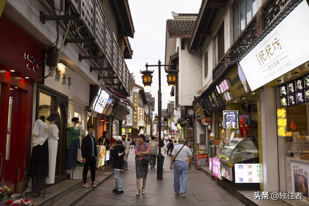 沿街的商铺也各显其能,琳琅满目,丰富多彩,唯一不变的是这些小商铺依旧保持着古朴的建筑风格,有些在门楣之上悬挂一个造型别致的旗幡,上面写着自家售卖的商品,古老而实用。