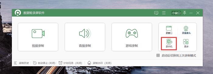 第1步:在官网下载安装它,点击主屏幕上的“数据蛙录屏软件”图标,打开它,在主页可以看见多种录制模式,如视频录制、游戏录制、音频录制等,我们选择“录手机”功能。