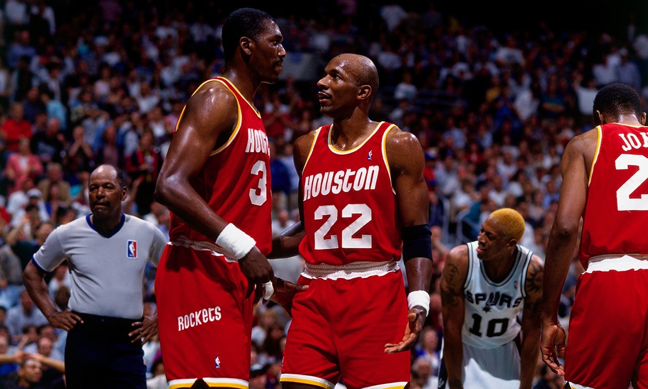但是比较起巴克利、马龙、尤因等因为和乔丹同一时代而终生无冠的其他巨星,德雷克斯勒又是幸运的。1994-1995赛季之前,德雷克斯勒做出了最正确的决定,他离开了效力了12年之久的开拓者,来到了大学时就读的休斯敦,加盟火箭队,和大学校友奥拉朱旺重聚。那时乔丹还在打棒球,这一次德雷克斯勒得到了命运的青睐,火箭以常规赛西部第6名的身份创造奇迹,最终夺冠,德雷克斯勒也得到了梦寐以求的总冠军戒指。很多球迷人云亦云德雷克斯勒是抱奥拉朱旺的大腿蹭了一个冠军,可是看看他的技术统计:季后赛场均20.5分、7个篮板、5次助攻;总决赛更是场均21.5分、9.5个篮板、6.8次助攻。完全是超级巨星、球队核心的数据,这是他和大梦共同带队的总冠军,他当之无愧。虽然只在火箭效力了3个赛季,但是因为总冠军,因为大学时的渊源,德雷克斯勒也成功成为火箭名宿。同时成为两支NBA球队的历史名宿,德雷克斯勒也算人生赢家了。