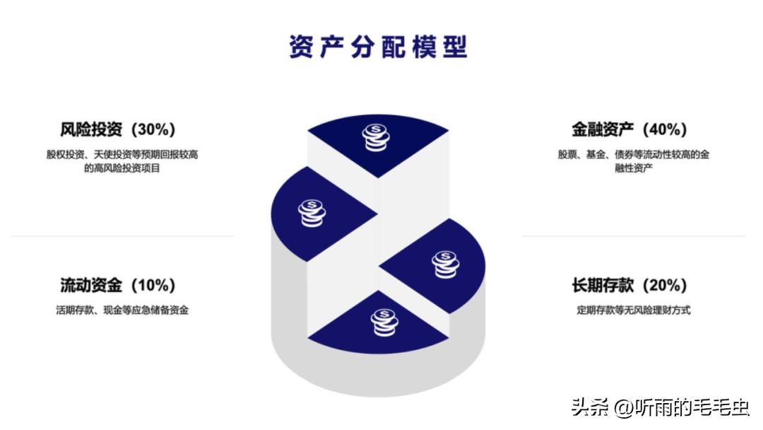 制定长期财务目标,包括退休规划、子女教育基金、购房计划、应急储备金、投资计划等。目标应具体、可行,结合个人财务状况和风险偏好,并有明确的时间节点。下面是我的资产分配模型,供参考: