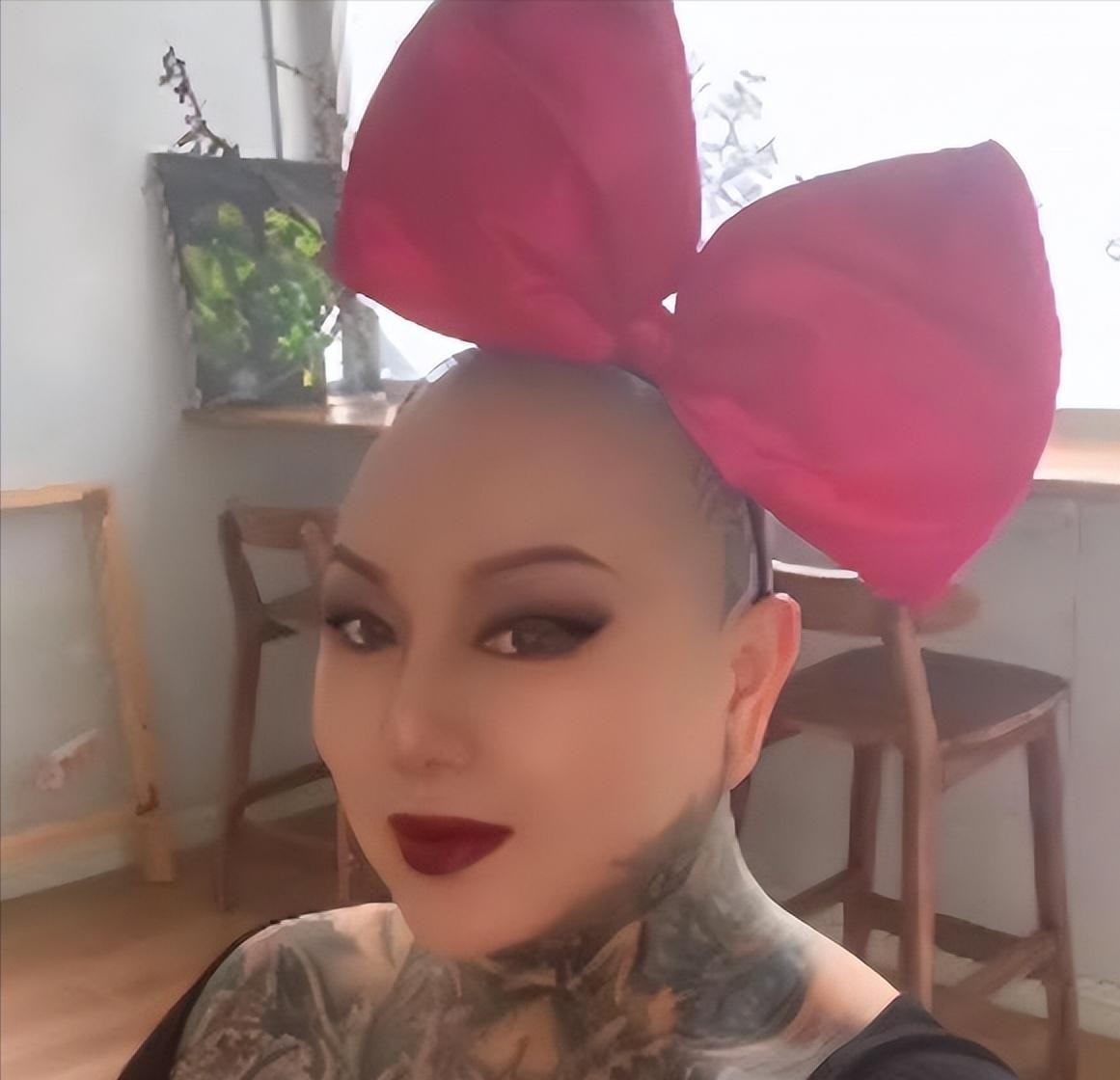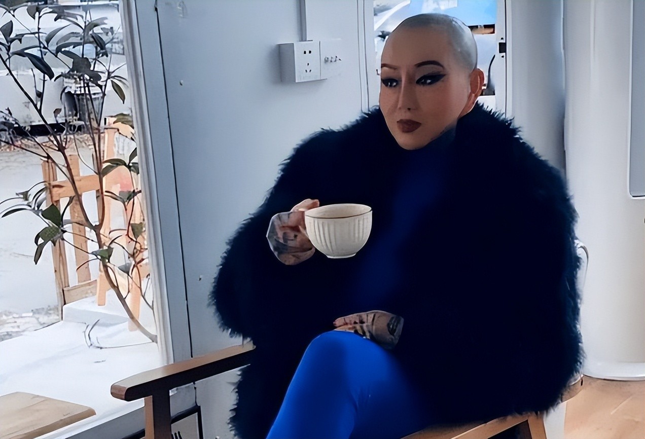 冯萍粗重的妆容、光头造型,甚至连裸露的部分肌肤,也都被密密麻麻的刺青所覆盖。整个人无疑显得格外夸张,与众不同,让人咋舌不已。