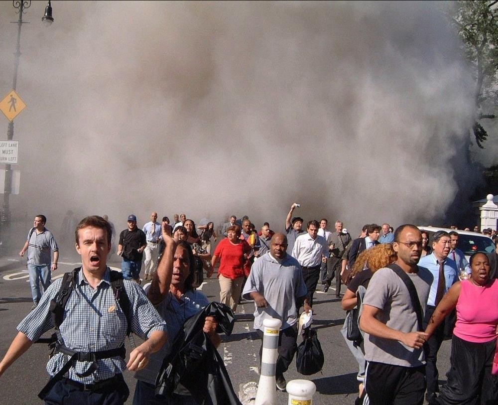 在此期间,双子塔南塔的坍塌,也使得美国许多民众和消防、医护人员当场身亡。