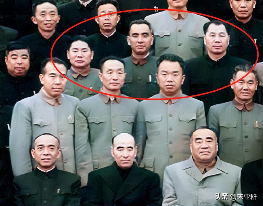 照片中用红圈框住的便是“三杨”:杨得志国字型脸,刚毅自信;杨勇身材魁梧,脸色黝黑;杨成武则是一张白净的脸庞,有点知识分子的气质。