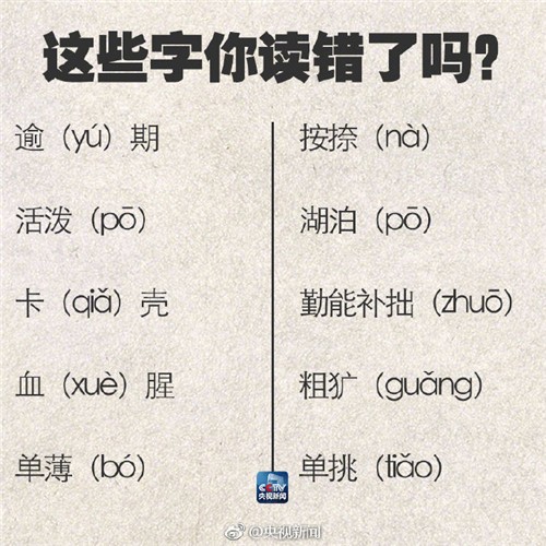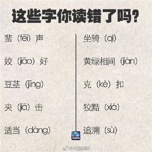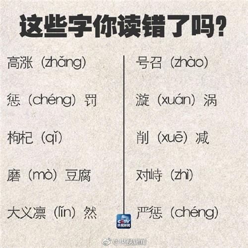 【90个容易读错的字,转存,有用!】高涨(zhǎng);号召(zhào);严惩(chéng);一档(dàng)节目;毋(wú)庸置疑;搭载(zài);蜚(fēi)声;适当(dàng);坐骑(qí);血(xuè)腥;按捺(nà);树冠(guān);肖(xiào)像;噱(xué)头……你读错过吗?