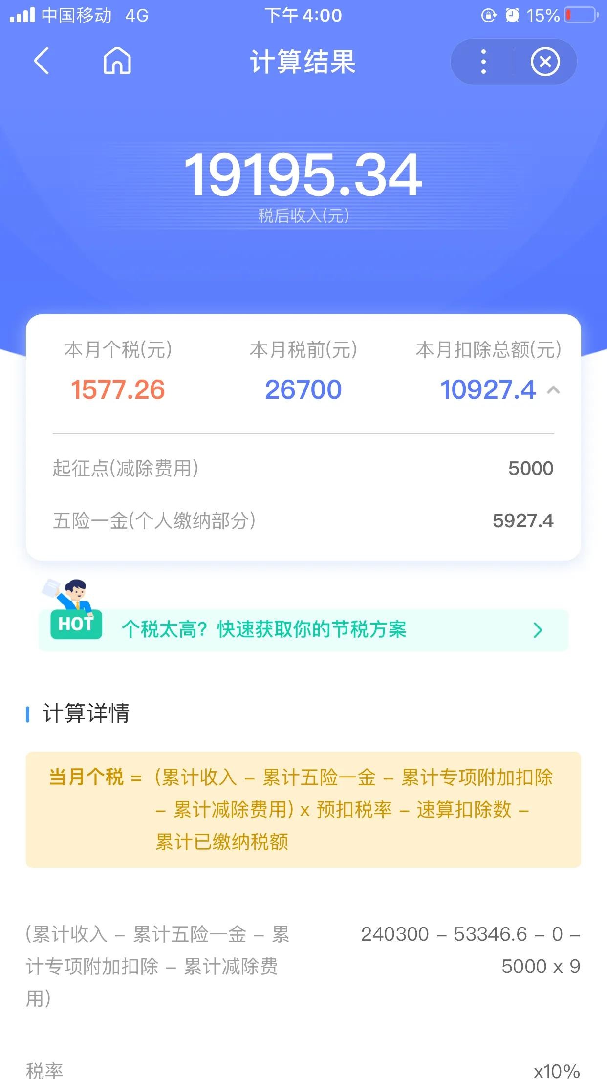 比较良心的企业是五险一金会按照每个月实际工资收入作为缴费基数,比如以每个月26700元来计算,实际到手是19195元,公积金到手有6400元,实际到手25600左右。