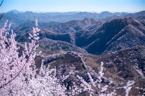 3月下旬起,延庆大庄科乡迎来一年中最绚烂的时节,山峦起伏间漫山春花盛放。粉嫩的桃花、杏花如云似雪,层层叠叠的花海铺展开来,与古老的长城相互映衬,勾勒出一幅历史与自然交融的画卷。