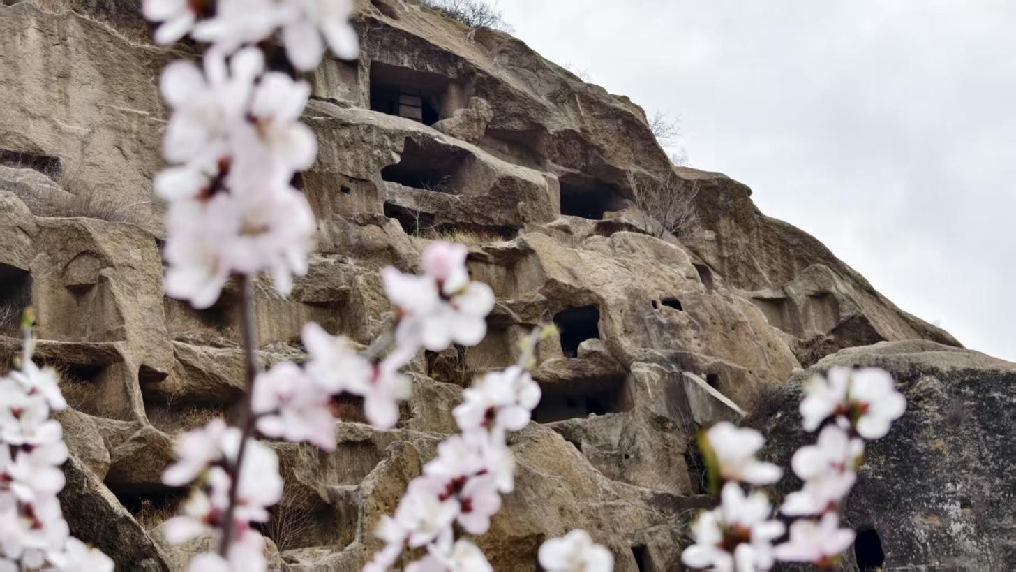 大庄科乡西北,延庆海陀山下,古崖居风景名胜区漫山遍野的桃花也相继开放。因景区位于延庆海陀山南麓,全部位于山体阳面,加之近期出现降水天气、气温较高,赏花期与去年比较大约提前了10天。据介绍,古崖居风景区的花期将持续至清明假期后。