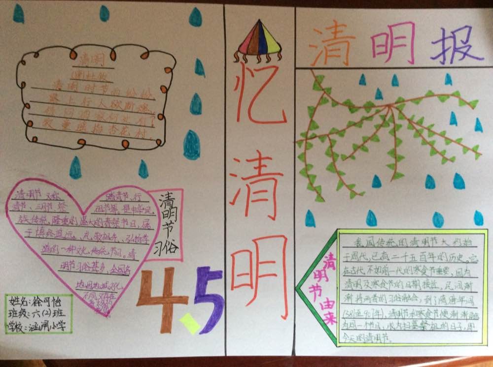 2020清明节,正值新冠肺炎疫情防控的攻坚期、关键期。涵闸小学贯彻疫情防控期间少出门、不聚集等有关要求,巩固防控成果,预防疫情传播扩散,倡导安全祭祀,推进移风易俗,营造文明、环保、节俭、安全的良好祭祀氛围。我们六(2)学生通过手抄报,用他们的灵巧的小手和优美的文笔,表达了对革命先烈的哀思,并对牺牲在抗疫一线的英雄们致以崇高的敬意!!