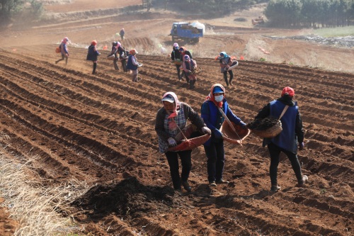3月25日,云南省昭通市巧家县马树镇小米地村的村民在播种马铃薯。 新华社发(张广玉摄)