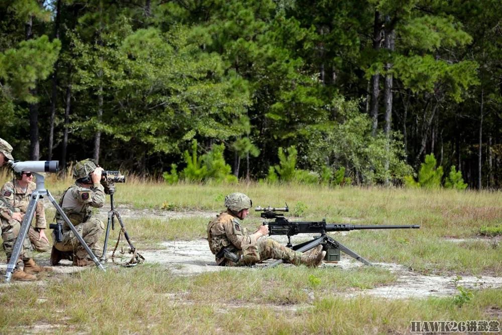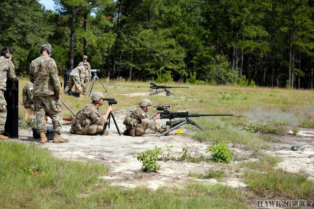 有两挺M2HB架在射击位置上。观察手将目标方位告诉狙击手,狙击手操作M2HB进行精确射击。不过参赛的M2HB显然是经过精心挑选的,精度比较高。而且在机匣上安装了高倍光学瞄准镜,用来进行瞄准和修正。