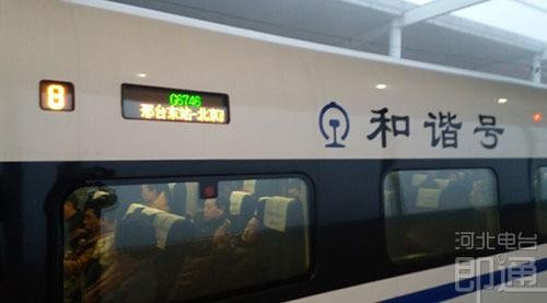 河北电台即通客户端报道(邢台记者站记者杜岩卿、邢台台记者秦庆翔)今天(1月10日)早晨7:53,G6746次列车从邢台东站始发开往北京西站, 成为邢台市发出的首趟统一编号的高铁始发车 。