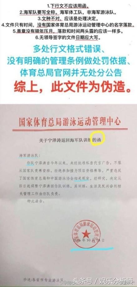 后来经万能的网友鉴定,该红头文件为伪造文件,而且是错漏百出。小编不是鉴定专家,文件真伪不会鉴别,不过宁泽涛作为游泳队的小鲜肉,“人红是非多”倒是人尽皆知!