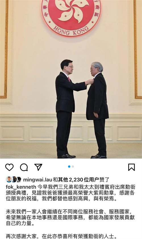 在社交媒体和新闻平台上,一则关于霍震霆的新闻引起了轩然大波。77岁的霍震霆出席了一场授勋仪式,满头白发却依旧神采飞扬,他的仨子和儿媳也到场见证这一重要时刻。这样一则简单的报道,却引发了广泛的争议和评论。