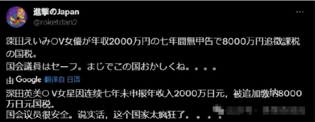可怜深田老师兢兢业业出道七年,辛辛苦苦存了2000万日元,不但被日本国税厅吃干抹净,自己一分钱没落下,还倒欠了日本政府六千万。