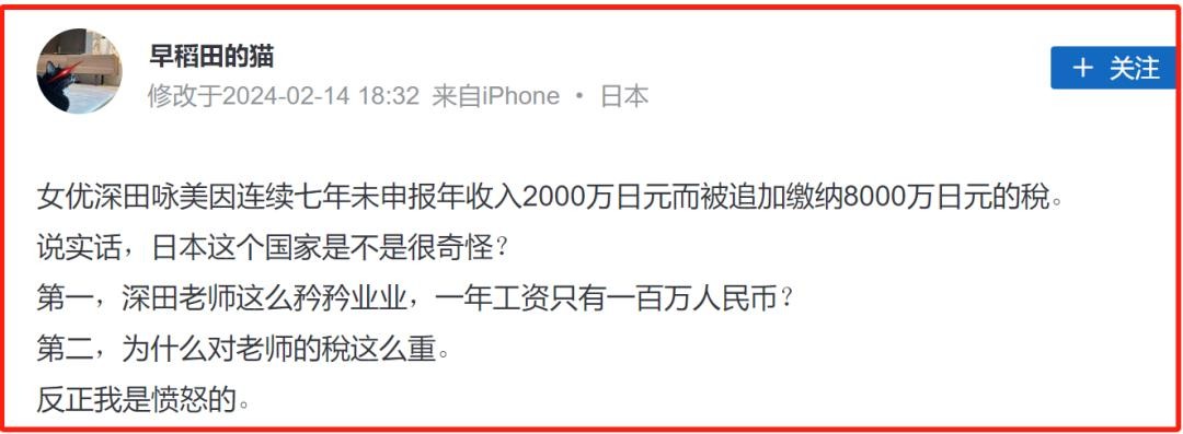 一年100万人民币的收入,这是对深田老师的不尊重。