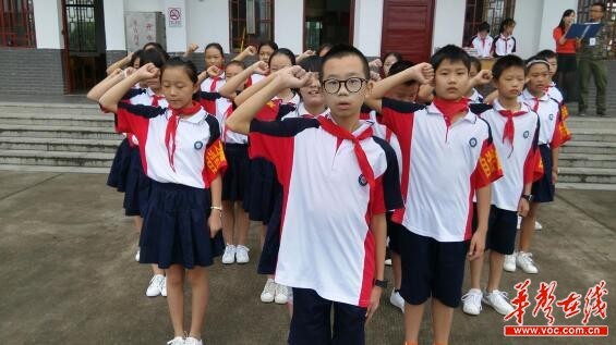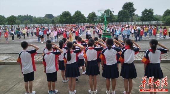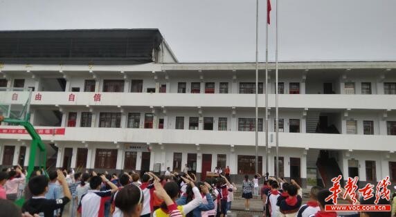 9月11日周会课上,益阳万源(双语)学校2017年下学期第三周升旗仪式举行,全校330名学生和23位教师参加,1701班陈倩同学发出倡议,学校初中部德育处主任钟静发表讲话:规范言行, 做文明的使者。