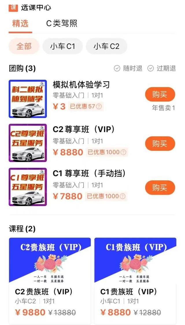 记者在某点评网站看到,这家驾校排在了滨江区驾驶培训好评榜第1名。在选课中心,提供了不同课程选择。从页面上看,有7880元、8880元;还有原价12880元的C1“贵族班”,现在优惠价格为8880元;原价13880元的C2“贵族班”,优惠后价格为9880元。