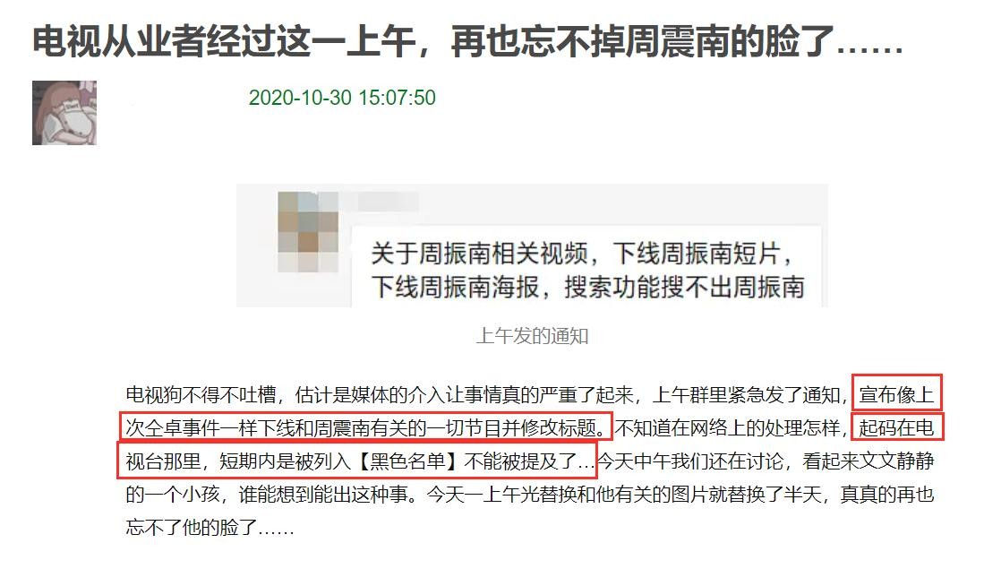 在被曝出周震南父母是老赖后,事情愈演愈烈,周震南在节目中的镜头被剪掉,组合的见面会也没有出席,事业全面停缓。
