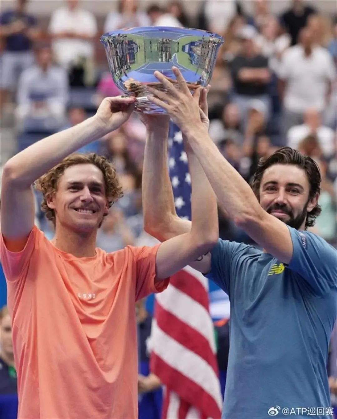 普塞尔(左)搭档汤普森夺得2024美网男双冠军(ATP官方社交平台图)