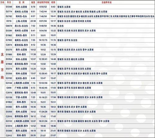 需要提醒的是,调图后大同至武昌间开行的K1365/6次,6月25日起停运,恢复开行日期另行通知;大同南至郑州东的D2773次、呼和浩特东至郑州东的D2785次、太原南至郑州东的D3389次、大同南至上海的D315次、郑州东至大同南的D2774次、上海至大同南的D316次、郑州东至太原南的D3390次,开行日期另行通知。