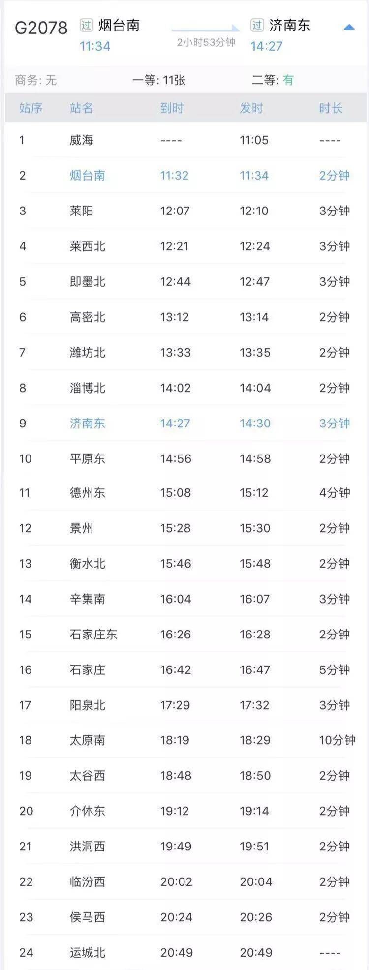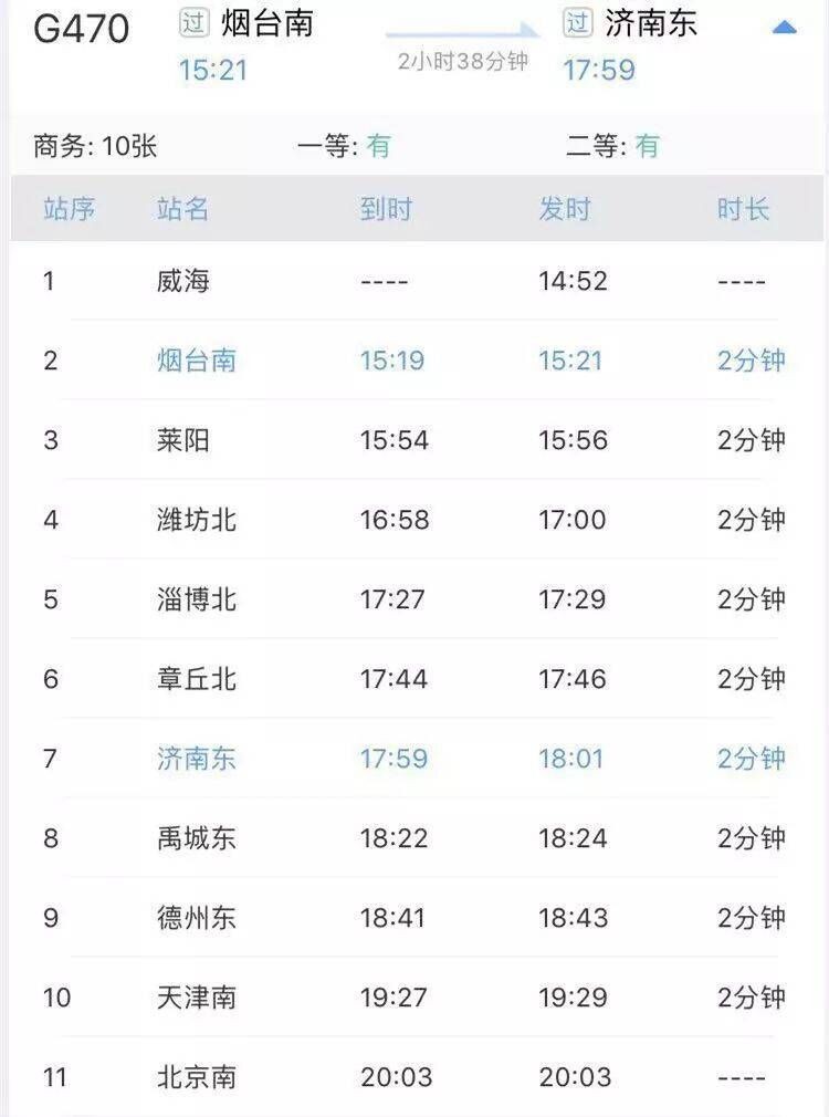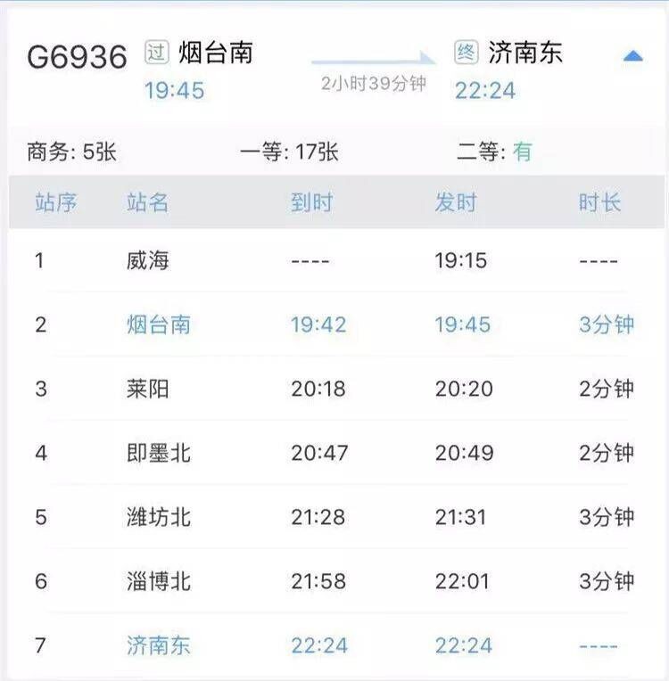 附:济南东至烟台新增高铁班次表