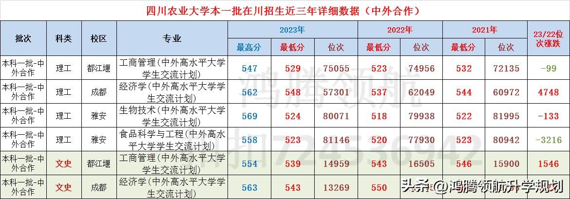 四川农业大学单列代码招收“中外高水平大学学生交流计划”简称“中高计划”,共4个专业“工商管理、经济学、生物技术、食品科学与工程”,“工商管理、经济学”文理考生皆招,是学校与澳大利亚麦考瑞大学的合作项目;“生物技术、食品科学与工程”仅招理科考生,是学校与澳大利亚昆士兰大学的合作项目;均采用“2+2”培养模式,国内学习期间为普通收费,国外学习期间费用较高。