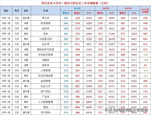 学校近几年在四川理科录取分数位次呈整体下降趋势,这与学校的专业设置及招生人数有关,其理科本一批共设68个专业,招生3243人,数量庞大,招生专业多则优势不明显,2023年在四川提前批招收“种子科学与工程”专业,本一批录取分数为554,排名52345位次,较2022年下滑5166位次,最高分与最低分差距拉大。