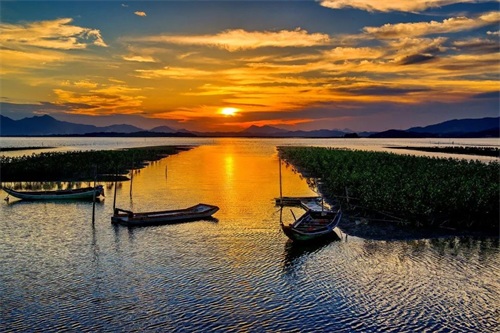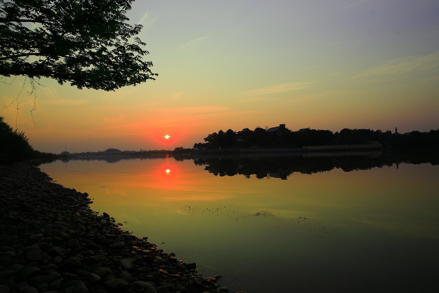 一道残阳铺水中,半江瑟瑟半江红。