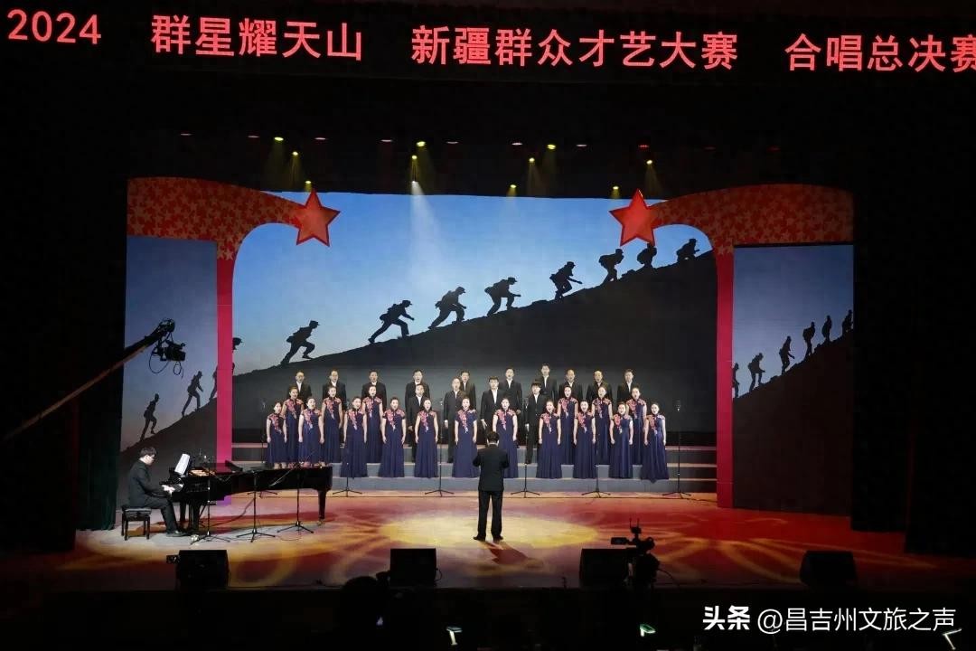 2024年新疆“群星耀天山”群众合唱比赛由自治区文化和旅游厅主办,新疆文化馆承办,乌鲁木齐市文化馆协办。“群星耀天山”新疆群众才艺大赛活动不仅是新疆各族人民展示音乐才华的平台,也为全疆群众提供了一个互相交流、互相学习的机会,同时进一步促进了新疆各民族文化的融合和情感的交流。决赛当天,各代表参赛队演唱了不同风格的歌曲,有《唱支山歌给党听》《花儿为什么这样红》《美丽的巴音郭勒》《请到赛里木草原来》《边疆处处赛江南》等经典曲目,展现了新疆各地的文化底蕴与艺术魅力。现场评委从演唱技巧、舞台表现力及团队协作等多方面进行综合评分。昌吉州、市文化馆“丝路之声”合唱团演唱了《不忘初心》《望乡》两首歌曲,得到了现场评委的一致肯定,以及其他参赛队伍的认可,最终以99.49分的高分获得比赛第一名。