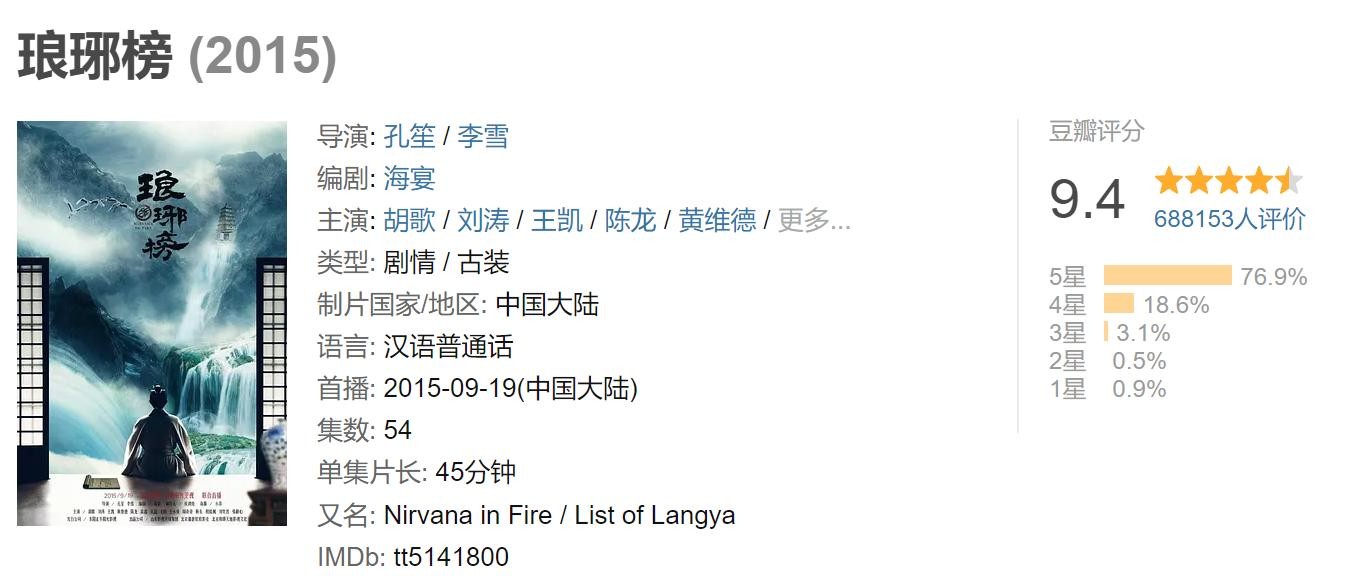 他在低开高走,一路封神的古装权谋剧《琅琊榜》中饰演云南穆府小王爷穆青。琅琊榜爆火,豆瓣评分9.4,还获得了飞天奖,相关演职人员也收获满满,孔笙获飞天奖优秀导演奖,胡歌和刘涛也双双提名飞天奖优秀男女演员,胡歌还获得了白玉兰和金鹰奖。