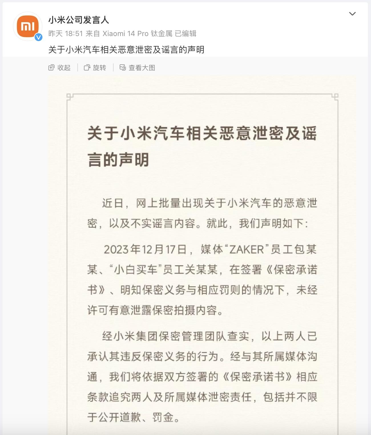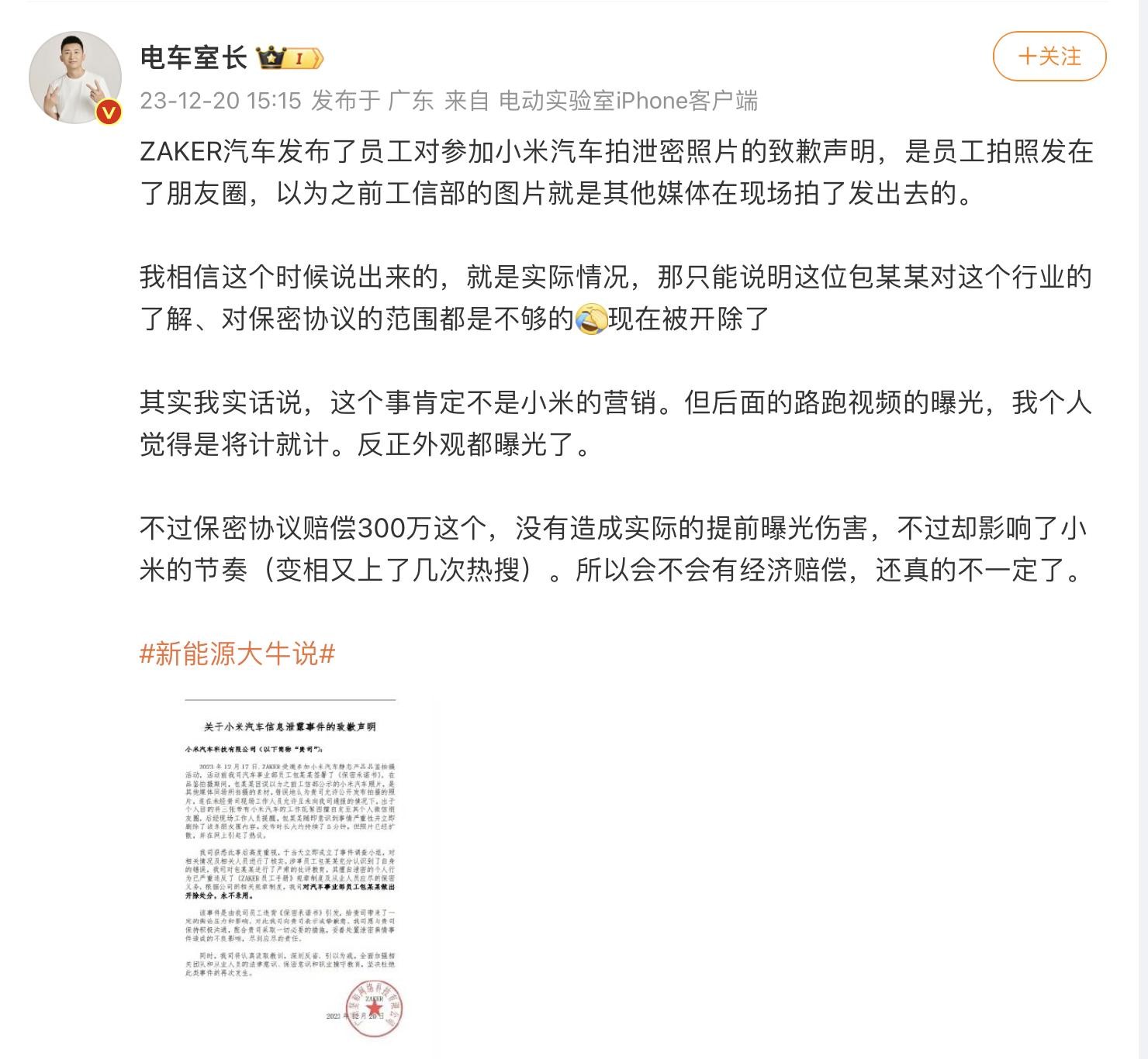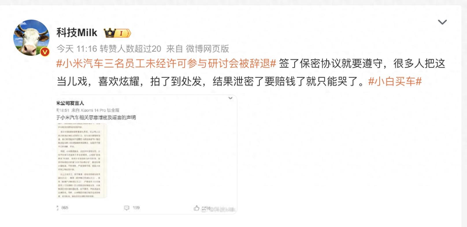 致歉+开除+永不录用!小米汽车被恶意泄密,网友:300万警告