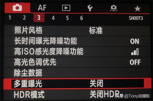 在设置多重曝光界面的时候,我们常规操作一般是如下图这般设置,能应付绝大多数的场景。