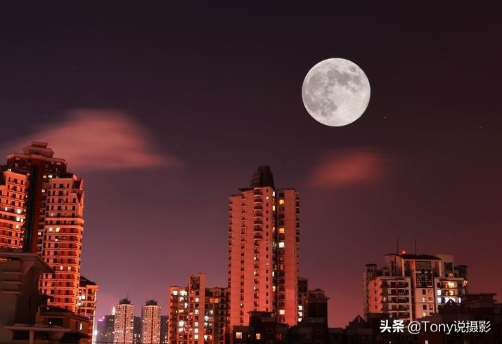 我们常见的拍摄大月亮的作品中,大多数是通过多重曝光或后期合成的,先用长焦镜头拍摄一张大月亮的照片,再用广角端拍摄一张风光照片进行合成,形成大月亮的拍摄效果。