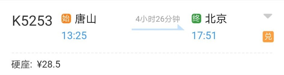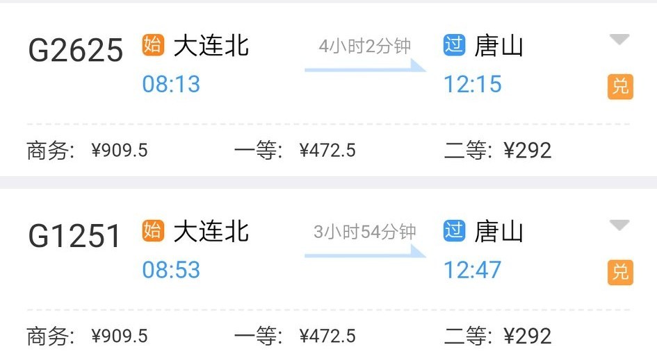 方案4:在大连北站乘坐G2625次或G1251次列车到唐山火车站。换乘K5253次列车到达北京 站。