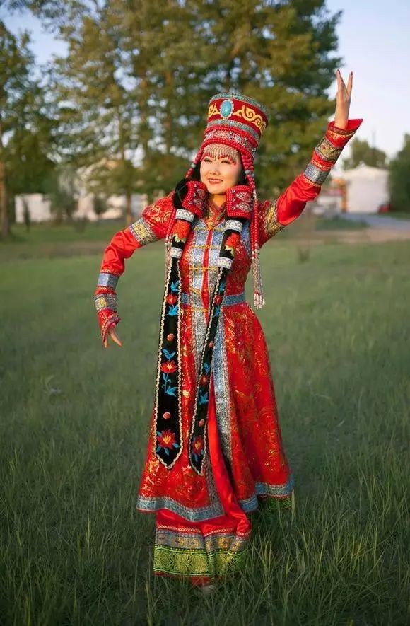 对襟四开衩长坎肩“乌吉”,是鄂尔多斯女子在出嫁时必须穿在长袍外面的一件服饰,关于“乌吉”还有一段美丽的传说。相传,有一天,元世祖忽必烈带着他的爱妃琪毕去打猎,当时琪毕穿了一件前不开襟,后身比前胸宽一倍,有两条腰带的长袍。忽必烈看后大喜,说这件衣服既能挡风寒,穿起来又比较轻巧,便于骑马征战和猎射。于是,便命令宫中纺织这种服装,也就是今天蒙古族服饰“乌吉”的前身。