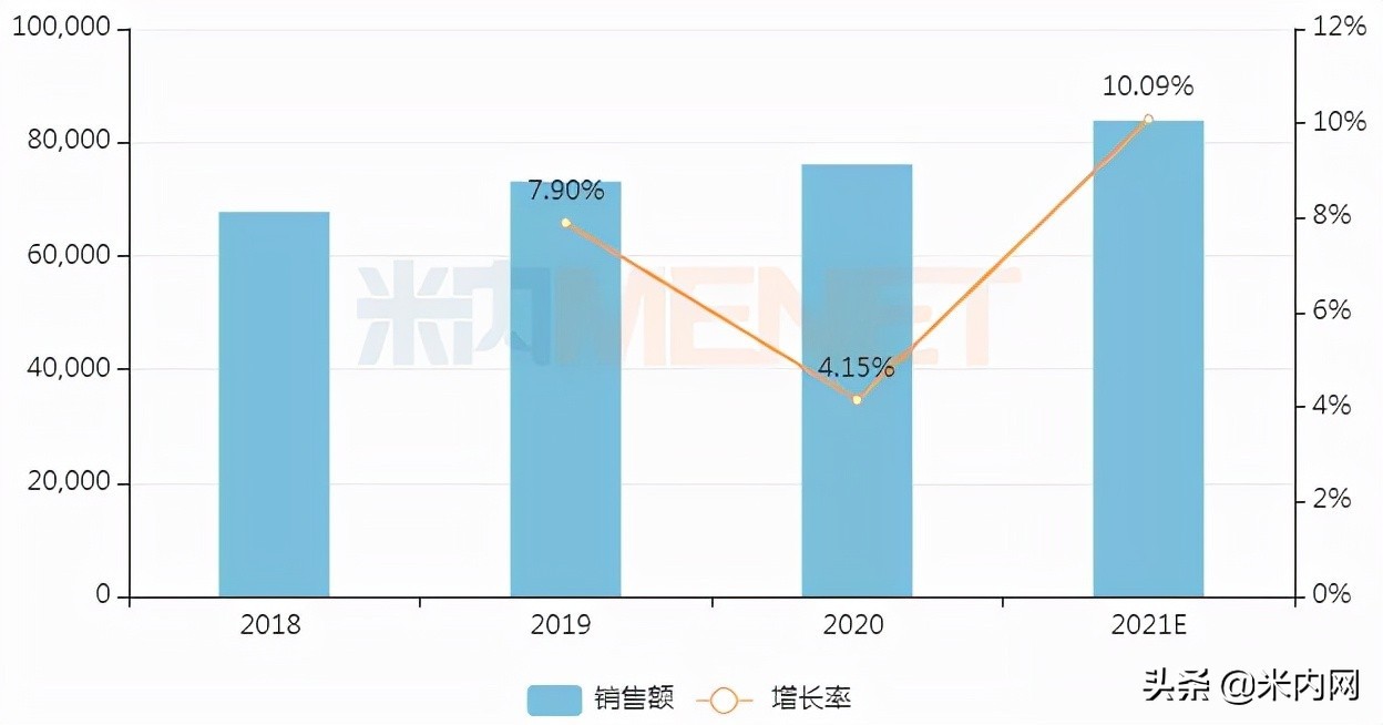 近几年来,中国城市实体药店终端化药贴膏剂的市场规模稳步扩大,预计2021年将突破8亿元,同比增长10.09%。