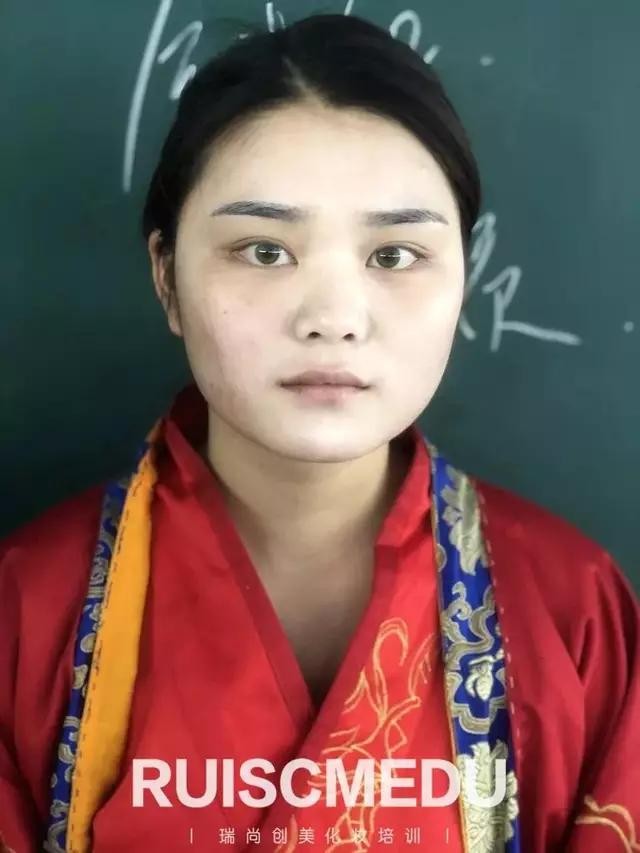 2.眉毛 也可上扬,显出一些霸气。但最后还是应模特而定。现在的影楼很少有把眉毛画上扬的,都是根据情况而定。最早唐朝时娥眉,初唐时期是“柳叶眉”,中唐时期是“八字眉”,晚唐时期最有代表性的是“桂叶眉”。