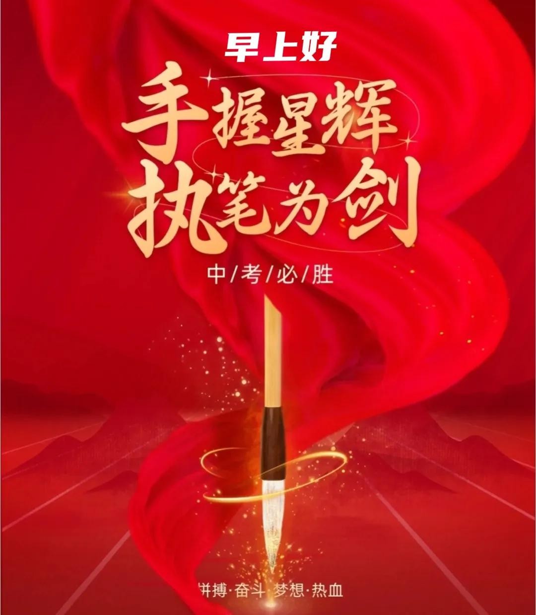 早上好,朋友!人生路上会有几个选择,中考,高考,大学,就业等等。祝你们每一步都稳健如山,能及时适应新的阶段。#中考##中考有多重要#