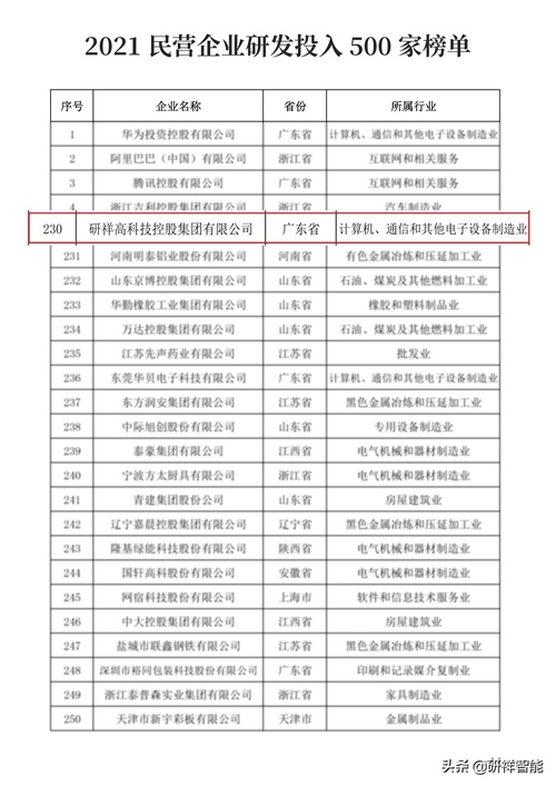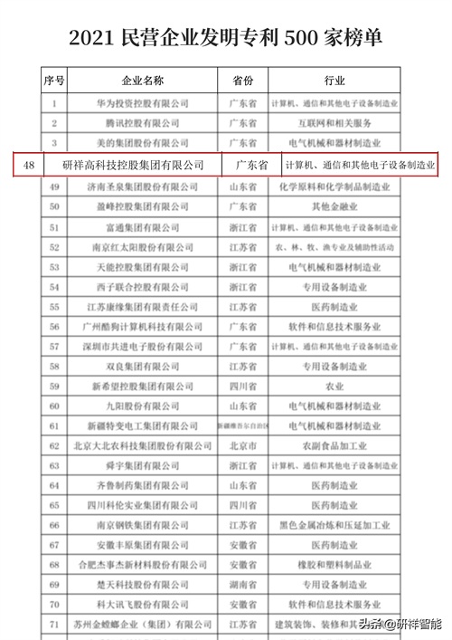 研祥集团荣登2021民营企业发明专利、研发投入500强双榜单