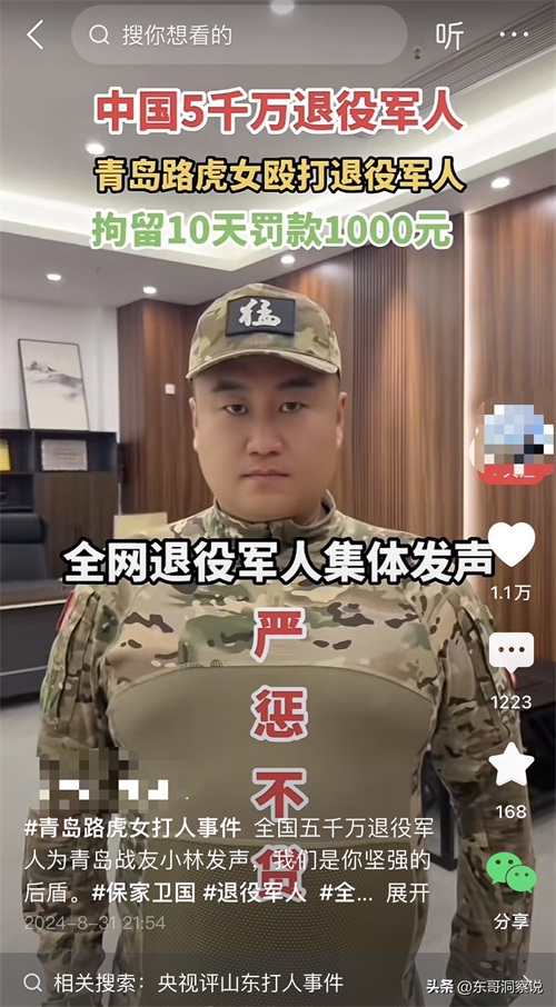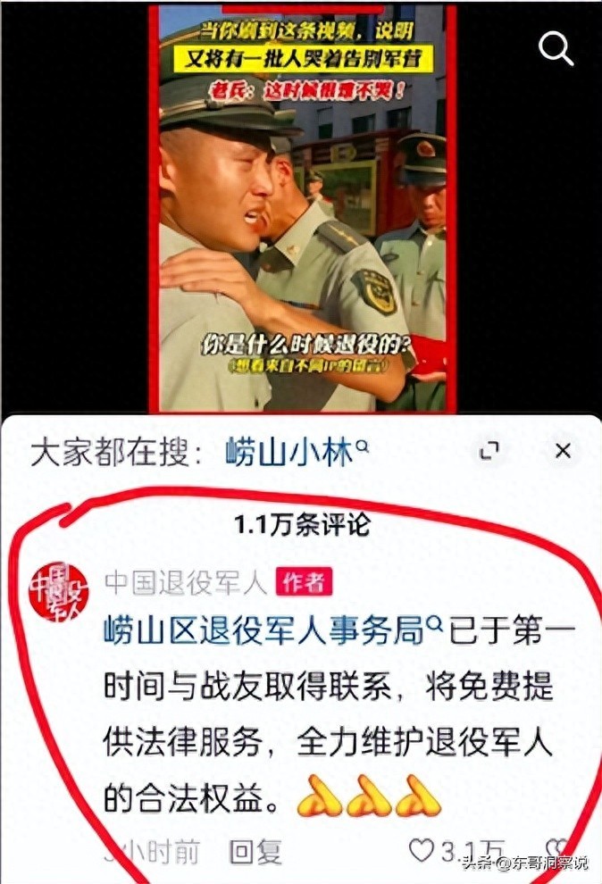 有网友表示,“看到这么多退役军人站出来为崂山小林发声,泪目了!”