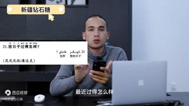 哈喽大家好吗?我是你们新疆的朋友钻石糖。今天继续学习维吾尔语课程,日常用语300句,上节课讲到第20句,今天学习第21句。