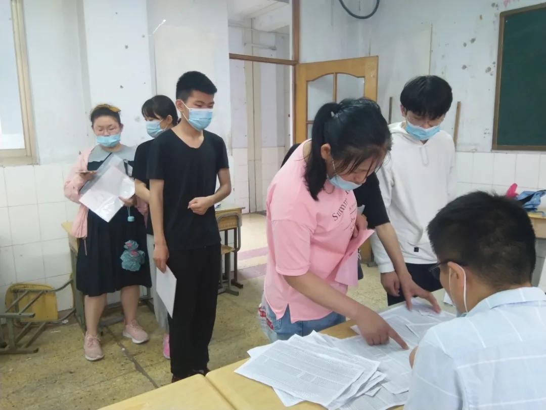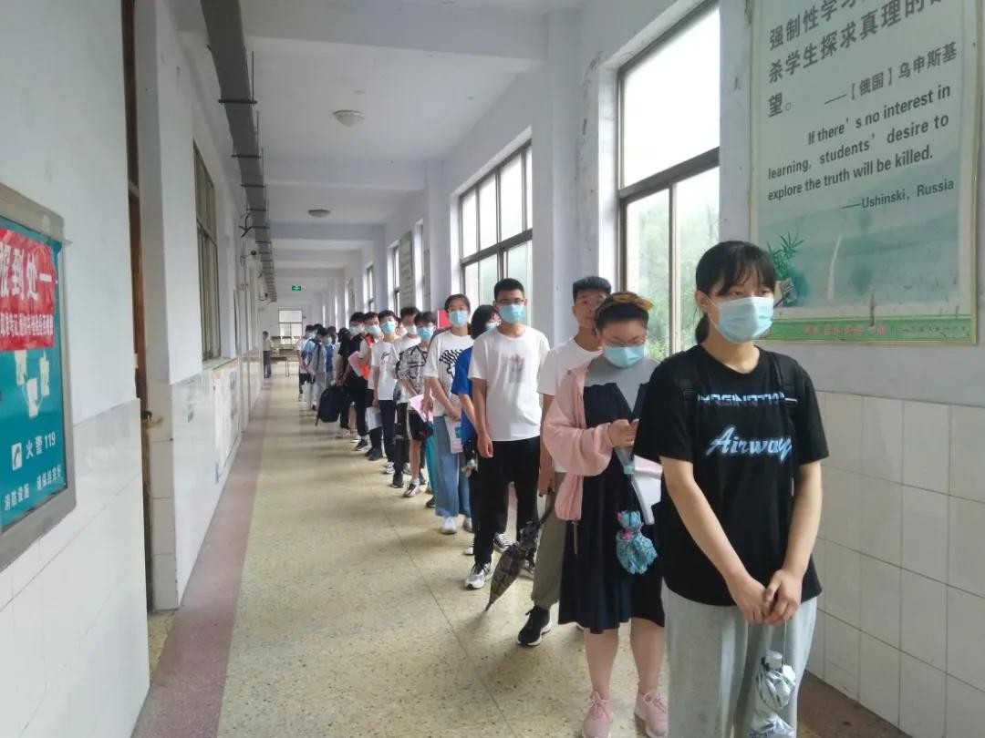 7月7日清晨,学校领导、各相关工作负责教师提早来到工作地点,兴高采烈的等待2021级新生的到来!报到在求实楼两个楼层同时进行,报到一处负责收取准考证、通知书、查验是否缴费,报到二处负责发放教材等资料,咨询处负责对学生进行报到指导。到两个楼层的报到的新生,满怀喜悦在求实楼外排成了长长的两个队列,依序进入楼内各报到处报到,表现出了良好的个人素质和精神面貌。老师们分组明确、各司其职、工作娴熟,紧张积极开展工作。