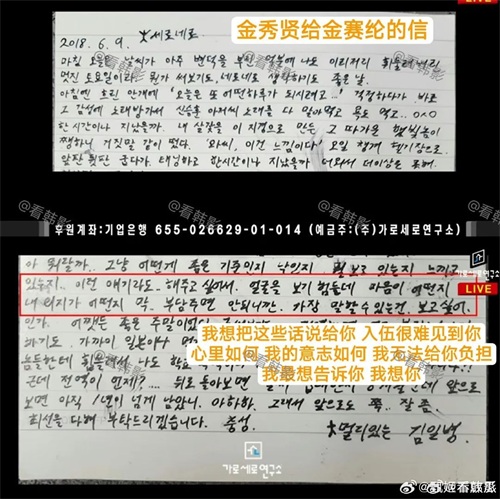 此外,金秀贤此前给金赛纶写的信也被公开!
